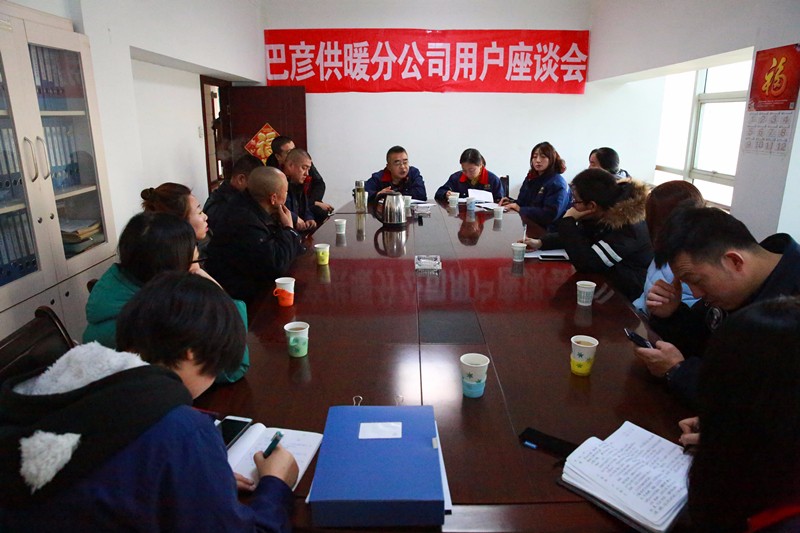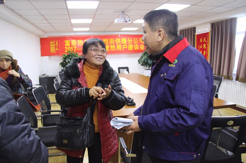 為了深入落實(shí)公司關(guān)于繼續(xù)開(kāi)展供熱服務(wù)進(jìn)社區(qū)活動(dòng)的部署和要求,12月7日,新華西街供暖分公司、巴彥淖爾北路供暖分公司財(cái)大供暖所分別召開(kāi)用戶(hù)代表座談會(huì)。分公司負(fù)責(zé)人面對(duì)面地與用戶(hù)代表進(jìn)行交流溝通,虛心聽(tīng)取他們的意見(jiàn)建議,現(xiàn)場(chǎng)回答了熱用戶(hù)提出的問(wèn)題。